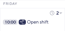 An open shift is a shift which has no employee assigned to it. As a shift administrator you might need to layout a general schedule but let your employees decide who takes a particular shift.