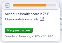 Once calculated, the score can be refreshed at any time. The Schedule Health panel will also display the timestamp of the most recent calculation.